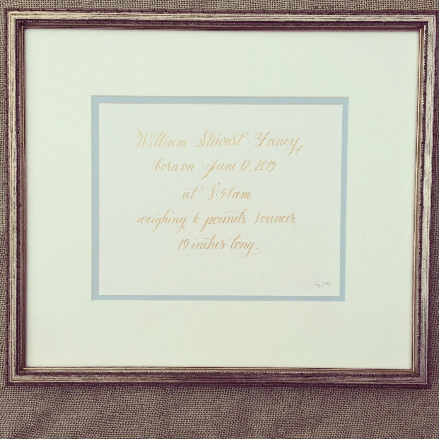 Please include the following info: Full name of your child (you can include a nickname if you would like), birthdate, time, weight, and length along with any other tidbits you'd like to include on the commemorative.
